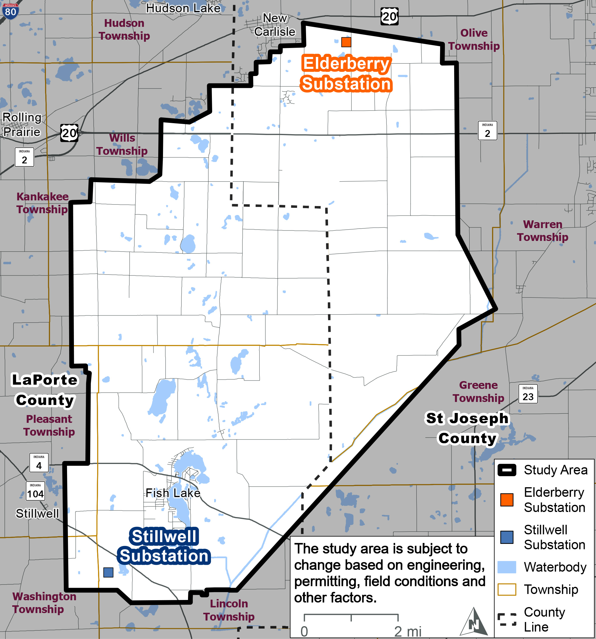 The project involves WVPA constructing a new transmission line to connect the existing Elderberry Substation in St. Joseph County, Indiana to the existing Stillwell Substation, located in LaPorte County, Indiana. The proposed transmission line is approximately 18 miles long.